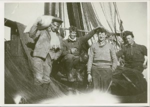 Photo 6:  Knut and three of his brothers working on the Vandringen before the German occupation of Norway:  Kristian (far right), Maurelius (second from the right), Knut (third from the right), Egil (far left).  The photo is the property of Knut and Haldis Einarsen.