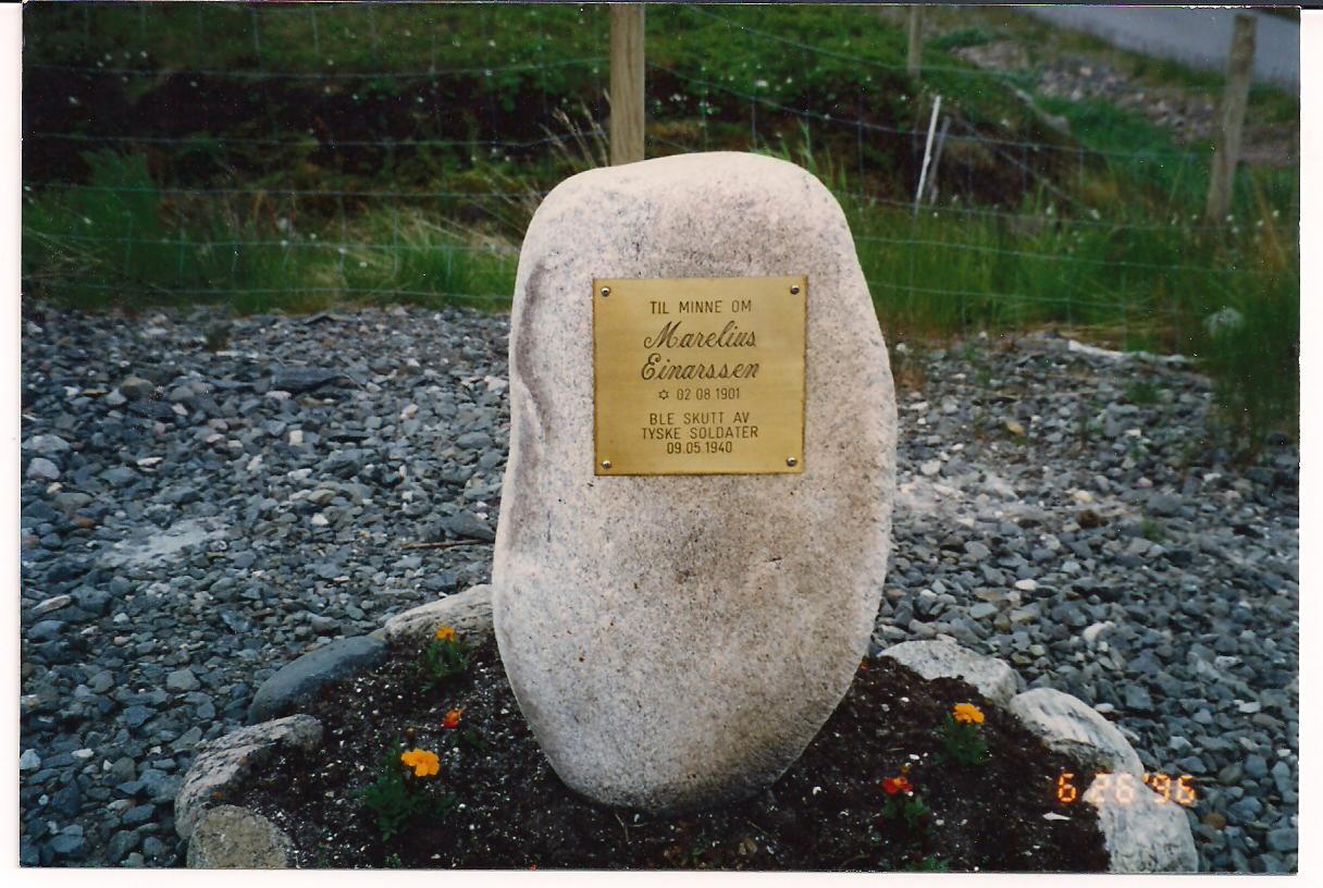 Monument to Maurelius Einarsen in Skarsta, Norway (died 1940)Photos 3 and 4:  The monument erected in Skarstad, Norway, in the memory of Knut’s brother, Marelius, who was shot and killed by the Nazis during the first few weeks of the invasion of that country.  He died in Knut’s arms.  (Photo belongs to Knut and Haldis Einarsen)